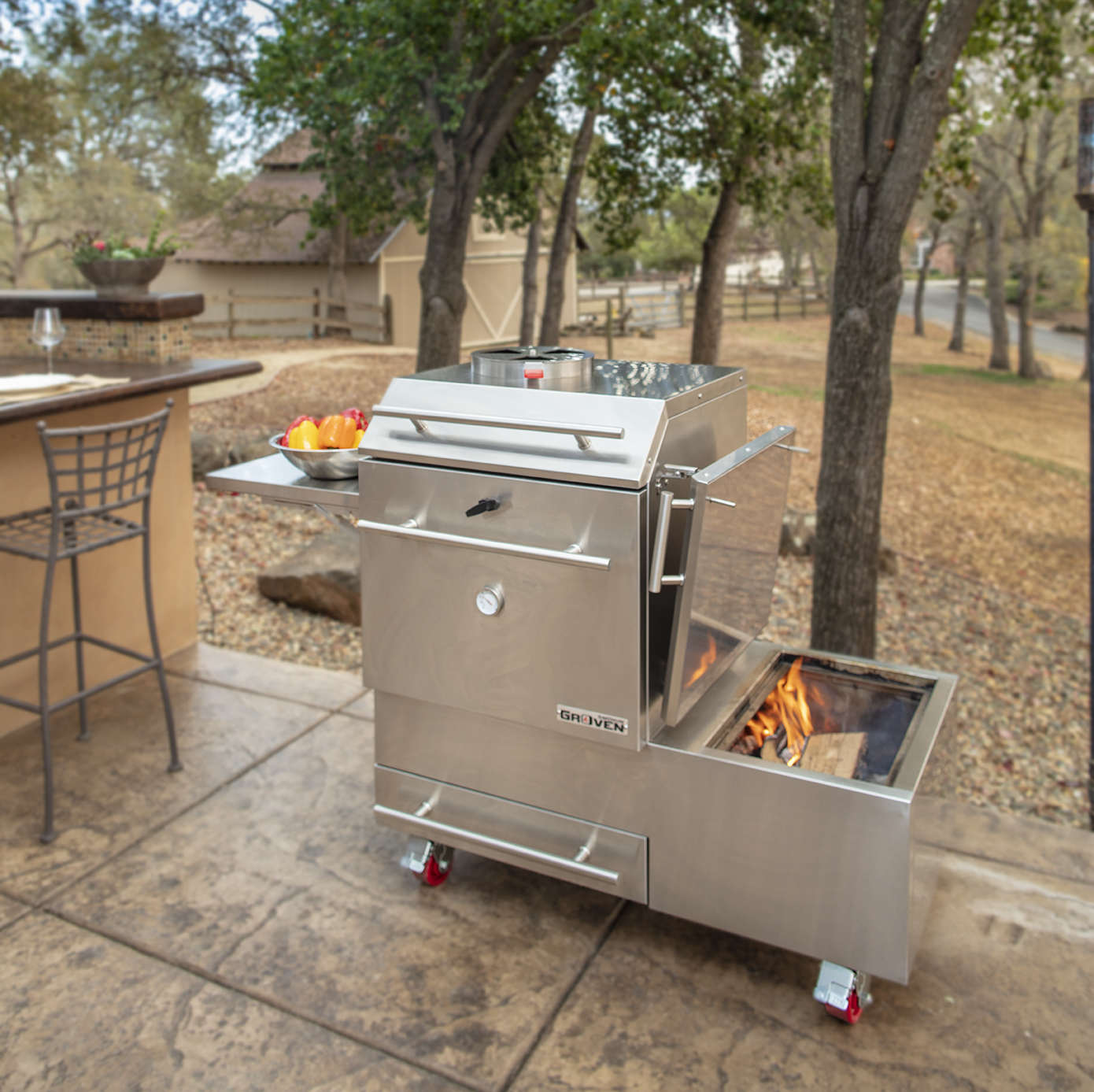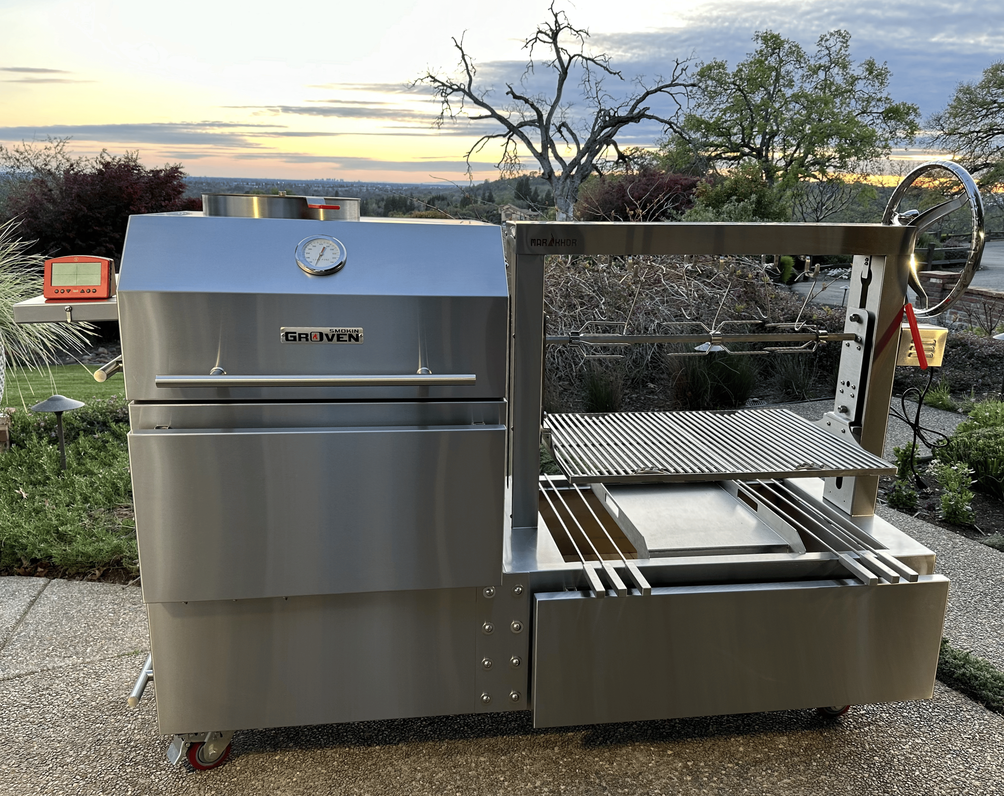 The original concept was created over 25 years ago by inventor Jim Blomberg, blending his passion for wood-fired BBQ with 40 years of engineering expertise. Originally inspired by Portuguese-style offset wood fire cooking seen in California’s Delta region, the Markhor features patented Flame Control for precise, live-fire cooking that also captures the joy of a campfire. Built on a mission of quality, performance, and ease of use, the Markhor lets you confidently cook anything—from BBQ to pizza—with the control of an oven and the flavor of real wood fire.